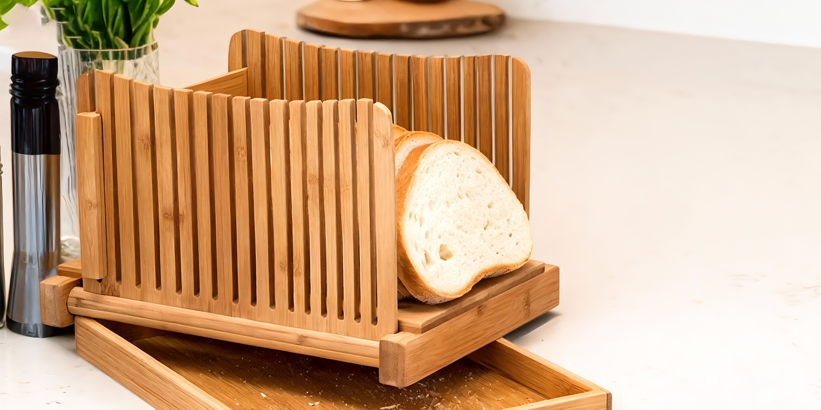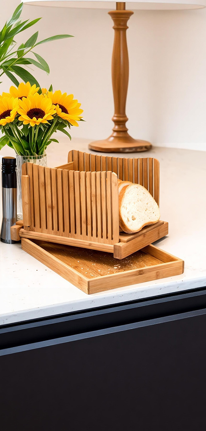 竹製折疊麵包切割導板吐司切片器烹飪廚房用品