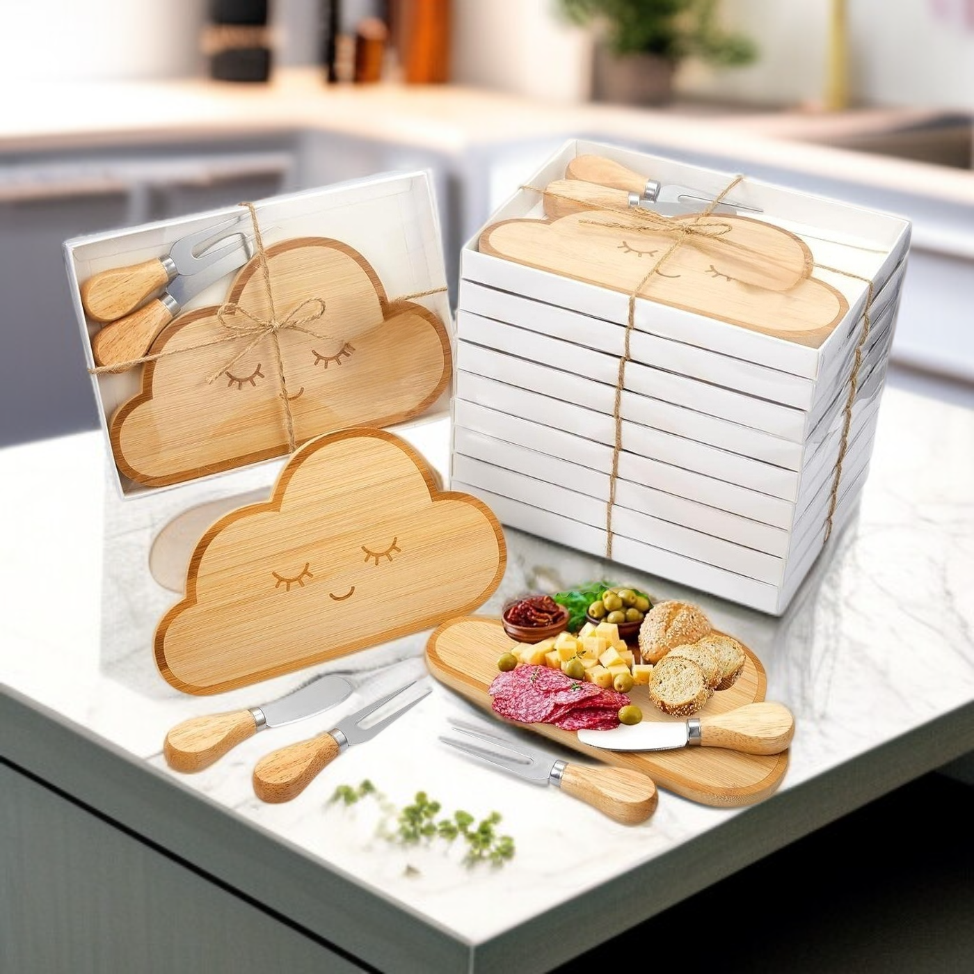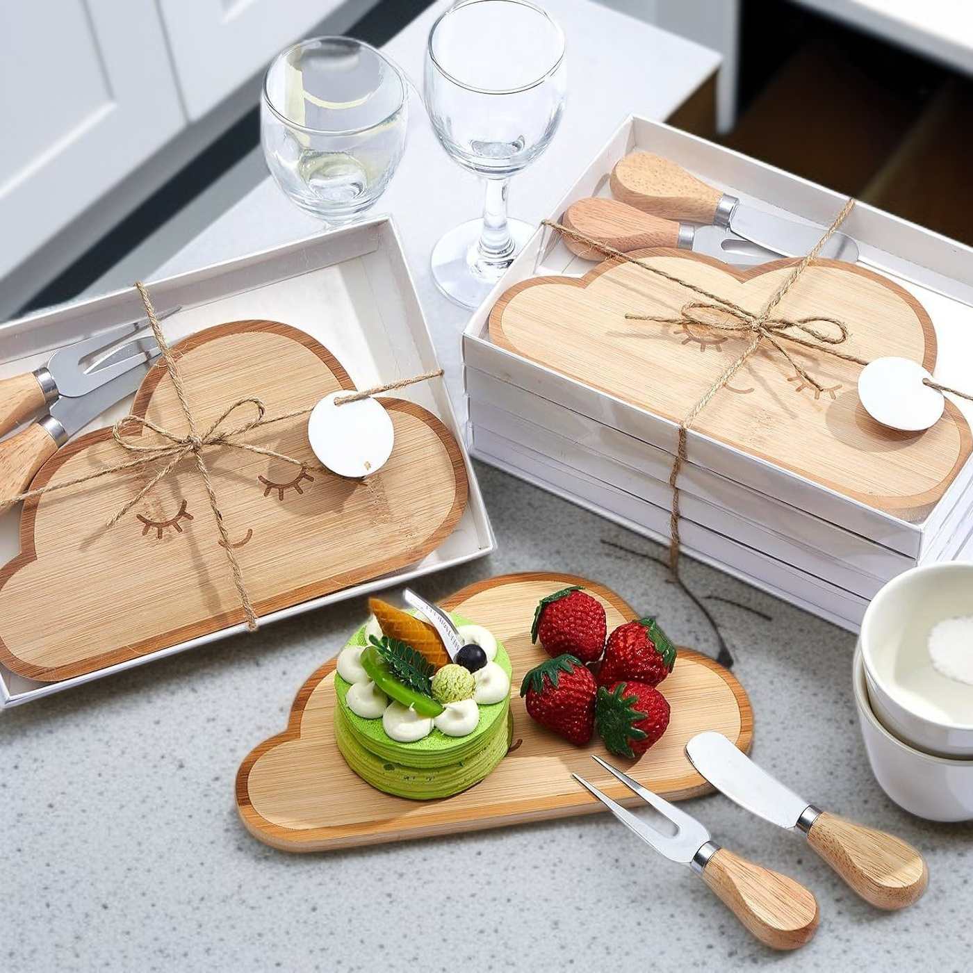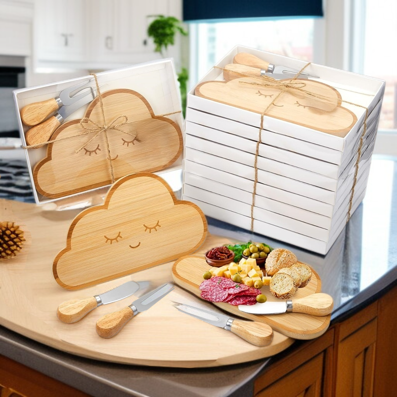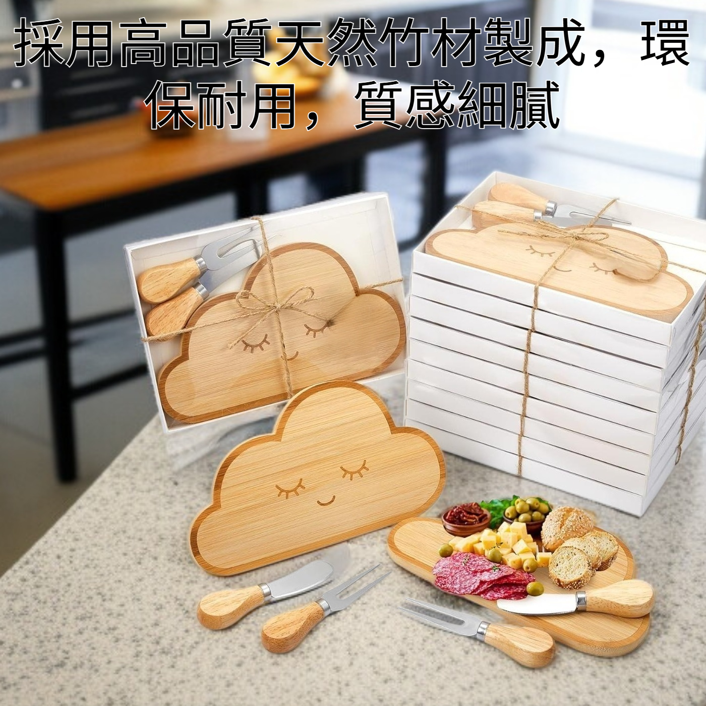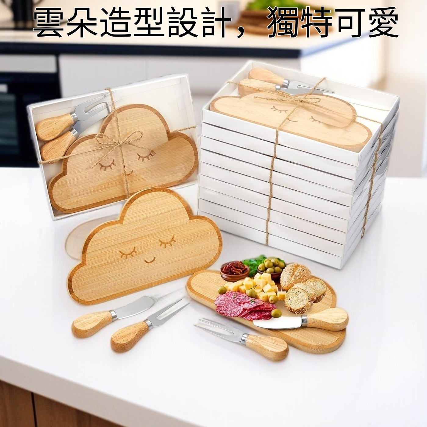 竹製熟食板水果麵包托盤砧板刀叉套裝雲朵奶酪盤