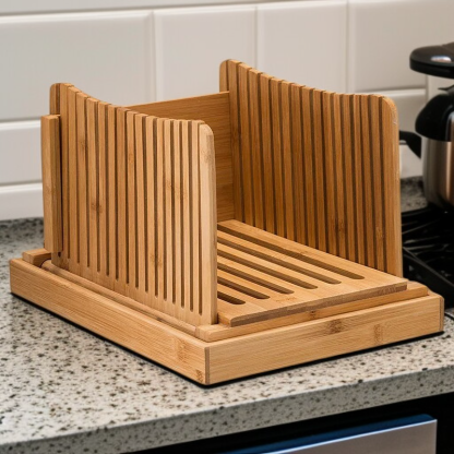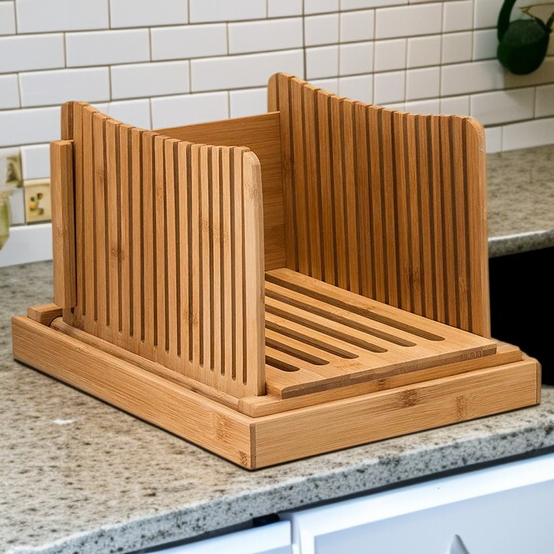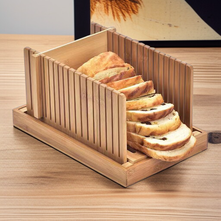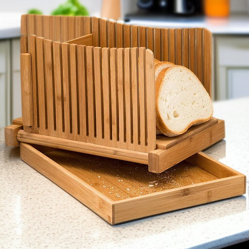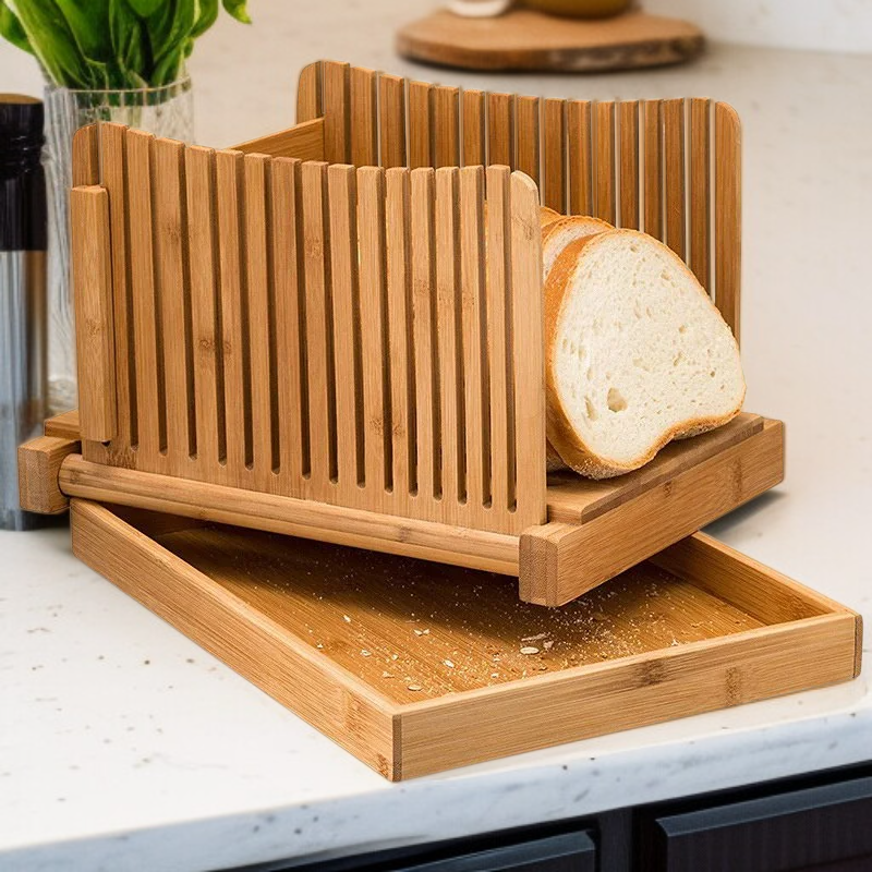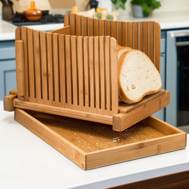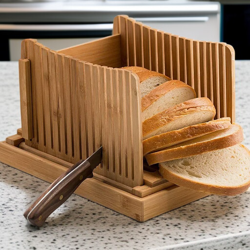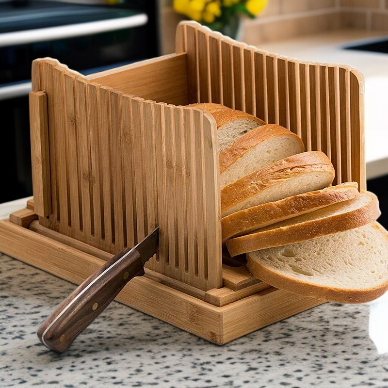 竹製折疊麵包切割導板吐司切片器烹飪廚房用品