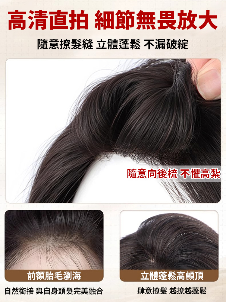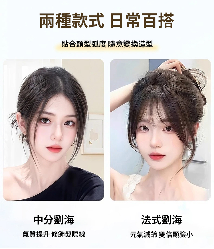【無需發卡】魔鬼氈瀏海假髮片遮白髮