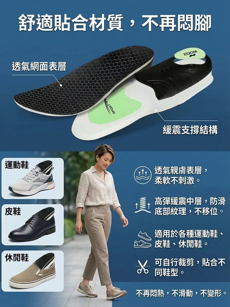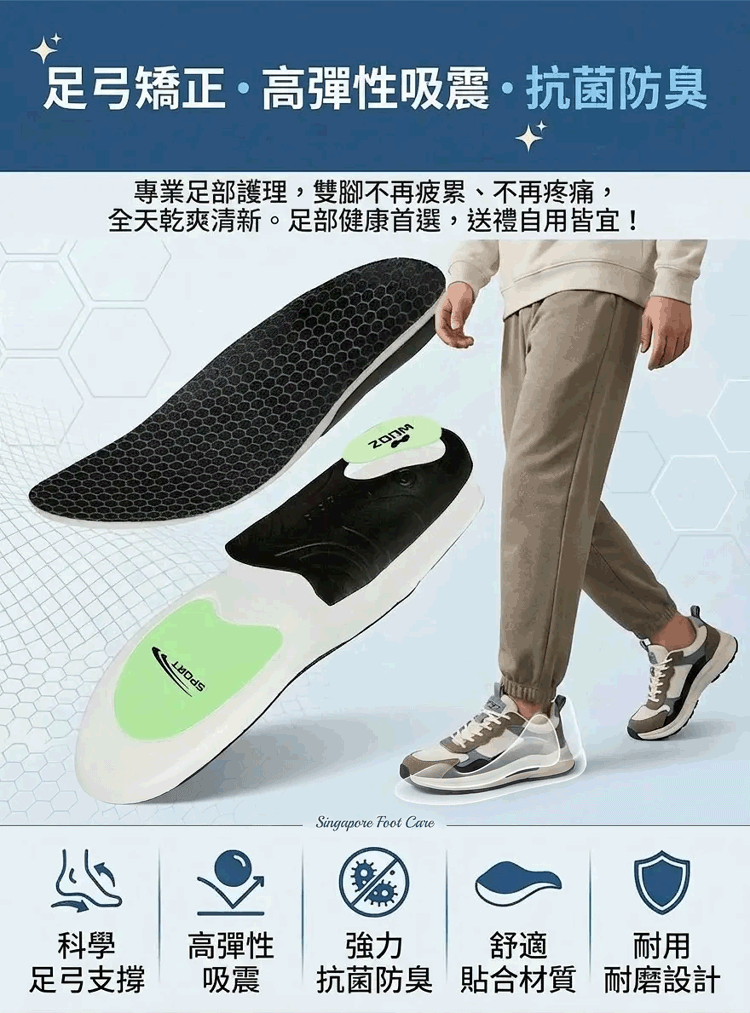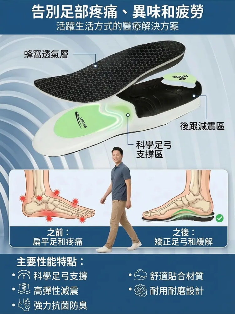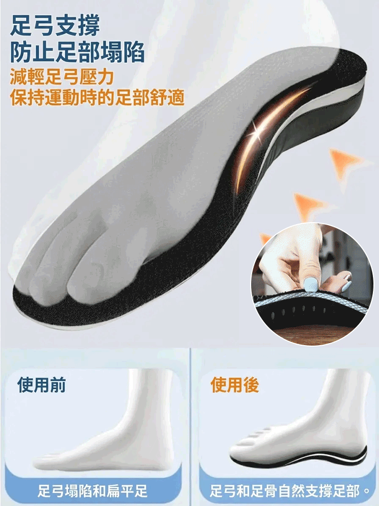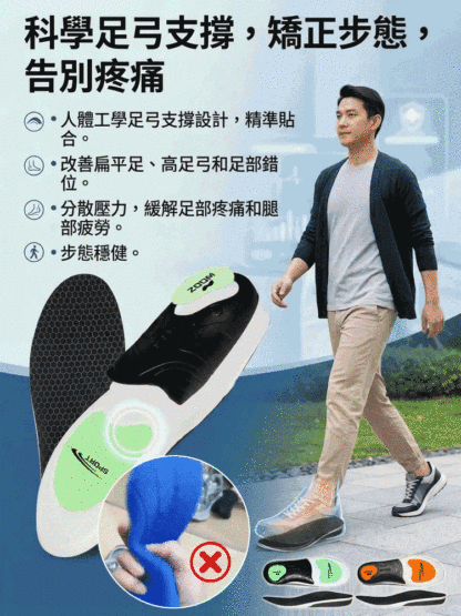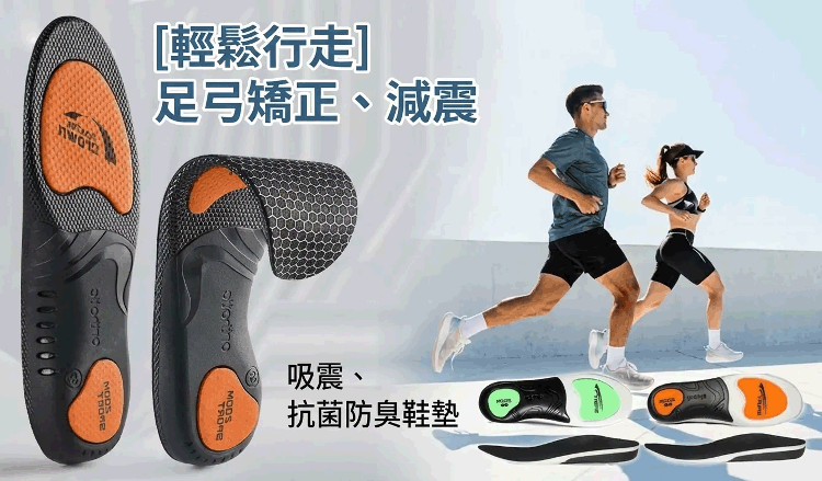 【走路不費力】足弓矯正減震抗菌防臭鞋墊