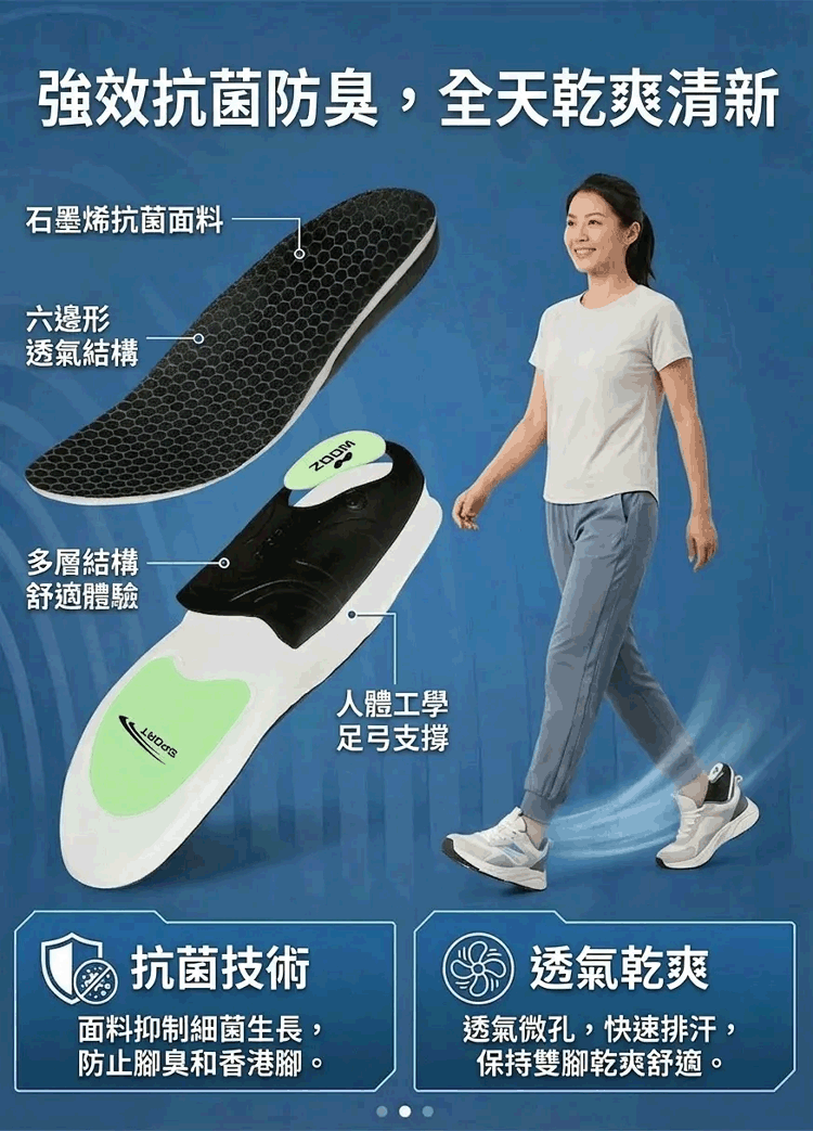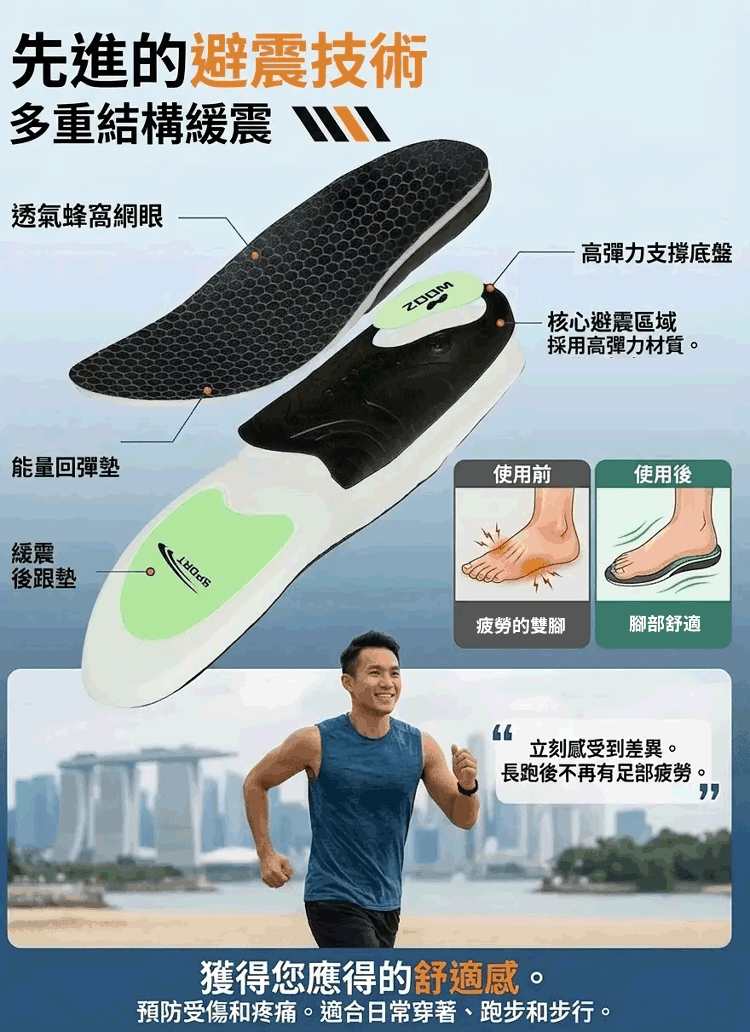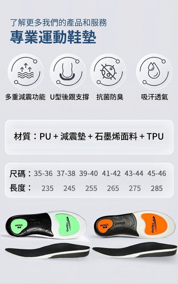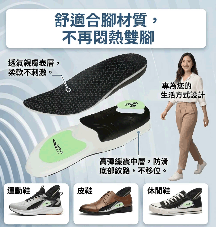 【走路不費力】足弓矯正減震抗菌防臭鞋墊